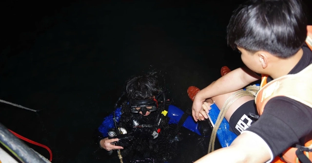 Bộ CHQS tỉnh Lào Cai đã huy động các lực lượng từ Đại đội Trinh sát Cơ giới số 1, Đại đội Công binh số 1, cơ quan Bộ CHQS tỉnh, dân quân các xã Bảo Aí, Cảm Nhân, Ban CHQS xã Bảo Aí phối hợp với các lực lượng và nhân dân với tổng số trên 500 người tham gia tìm kiếm, cứu hộ các nạn nhân còn mất tích. Trong ảnh: người nhái tham gia lặn tìm kiếm các nạn nhân trên hồ Thác Bà đêm 21, rạng sáng 22/2.