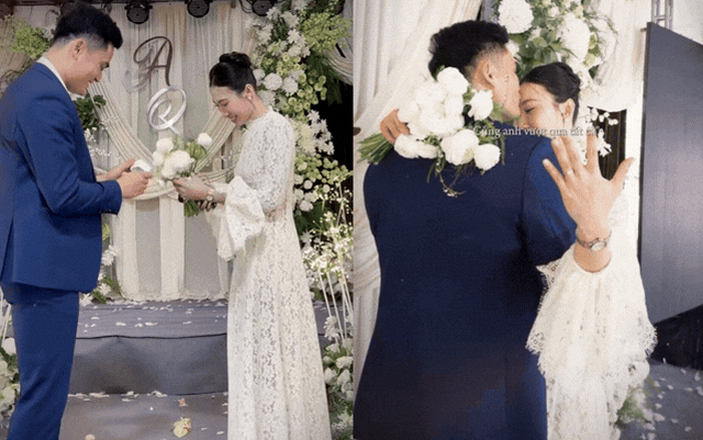 Trong không gian được trang trí ngập tràn hoa trắng tại đám cưới của một người thân trong gia đình, Quách Công Lịch xuất hiện lịch lãm trong bộ vest xanh, chậm rãi tiến đến trước Nguyệt Anh. Khoảnh khắc anh quỳ xuống, nâng niu chiếc nhẫn cầu hôn giữa ánh đèn dịu nhẹ đã trở thành điểm nhấn khiến nhiều người không khỏi xuýt xoa vì quá đẹp. Nguyệt Anh diện váy trắng ren tinh tế, gương mặt rạng rỡ xen lẫn xúc động, khẽ cúi đầu nhận lời trong tiếng vỗ tay chúc mừng của những người chứng kiến.
