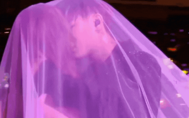 Không chỉ song ca đầy tình cảm, "anh sếp Cbiz" và nàng thơ sinh năm 1997 còn biến sân khấu thành 1 khung cảnh lãng mạn hệt như đám cưới diễn vào tháng 10/2025 vừa qua của họ. Trên sân khấu, Hoàng Tử Thao và Từ Nghệ Dương đã khóa môi nồng nàn dưới lớp khăn voan tạo nên 1 hình ảnh tuyệt đẹp, khiến khán giả bùng nổ, đồng nghiệp kinh ngạc bất ngờ. Màn "phát cẩu lương" kết tiết mục ngọt lịm, táo bạo của chủ tịch showbiz và cô vợ nhỏ lập tức chiếm sóng cả MXH Weibo, leo thẳng lên top 1 hot search với từ khóa "Hoàng Tử Thao và Từ Nghệ Dương hôn rồi".