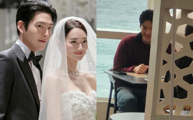 Shin Min Ah - Kim Woo Bin vừa tới 1 nhà hàng ở Tây Ban Nha để tận hưởng bầu không khí hạnh phúc, ấm cúng bên nhau. Đáng chú ý, chiếc nhẫn cưới trên tay của tài tử sinh năm 1989 đã khiến mạng xã hội nổ tung. Ảnh: X