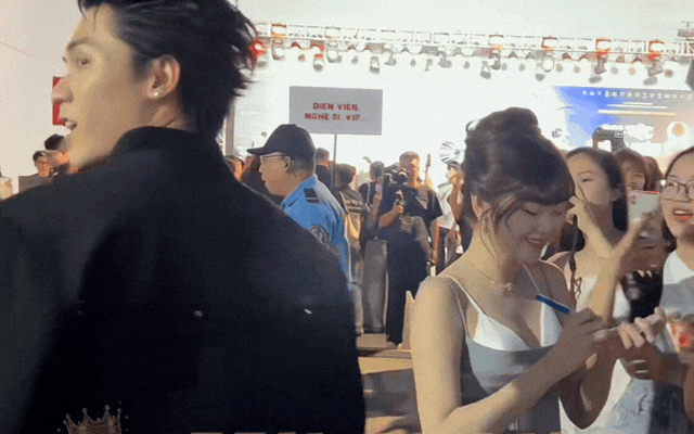 Trong clip, Gia Huy bước vào khu vực sự kiện, đảo mắt nhìn xung quanh chào hỏi mọi người. Nhưng khi đi ngang qua Triều Dâng, anh lại lướt qua luôn thay vì dừng lại "đánh tiếng" hay có bất kỳ tương tác nào như thường thấy. Về phía Triều Dâng, cô có để ý thấy bạn diễn, nở nụ cười nhẹ như chào hỏi nhưng khi đối phương đi thẳng, cô cũng chẳng gọi lại mà bĩu môi và tiếp tục ký tặng fan.