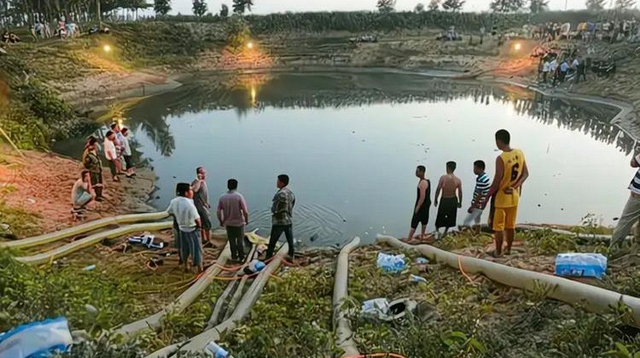 Tin rằng trong ao còn nhiều cá lớn, dân làng kéo nhau đến đánh bắt. Để thuận tiện, 4 người dân trong làng đã huy động 4 máy bơm nhằm rút cạn nước trong ao. Tuy nhiên, họ dần nhận ra điều bất thường khi ao cá không quá lớn nhưng các máy bơm hoạt động liên tục nhiều ngày vẫn không thể hút hết nước.