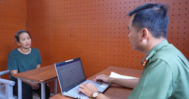 Cơ quan An ninh điều tra Công an TP Cần Thơ làm việc với đối tượng Huỳnh Thị Thu Thảo (Ảnh: Bộ Công an).