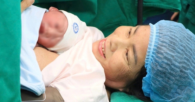 Sản phụ 60 tuổi sinh bé trai 2,8 kg tại Bệnh viện Phụ sản Trung ương. Ảnh: Thanh Hương