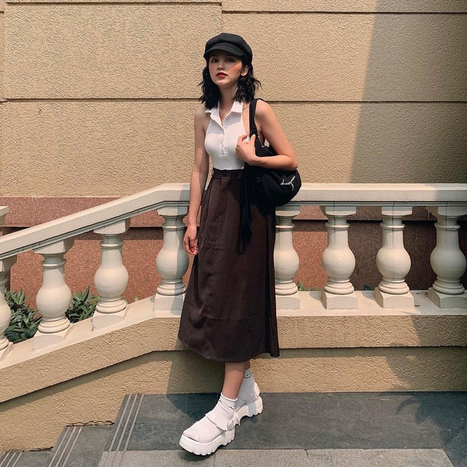 Nàng mẫu lookbook Dương Phương Thảo @dptmino mang đến một outfit vừa lạ vừa quen. Chân váy nâu dài, crop top và sandal trắng từ @melissashoes_vn được cô bạn phối cùng nhau đầy thông minh và bắt trend