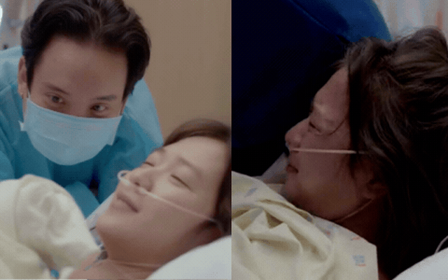 Trâm Anh lộ rõ vẻ mặt đau đớn nhưng nhan sắc vẫn rất xinh khi sinh con thứ 3