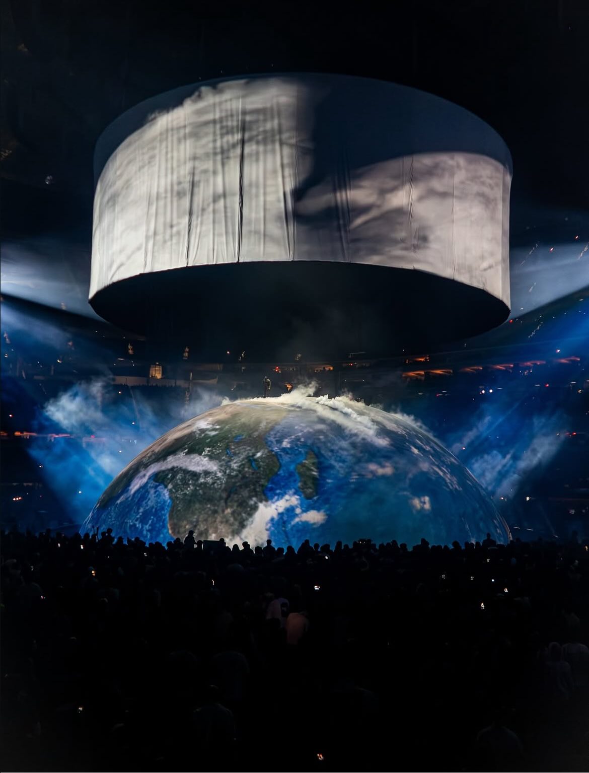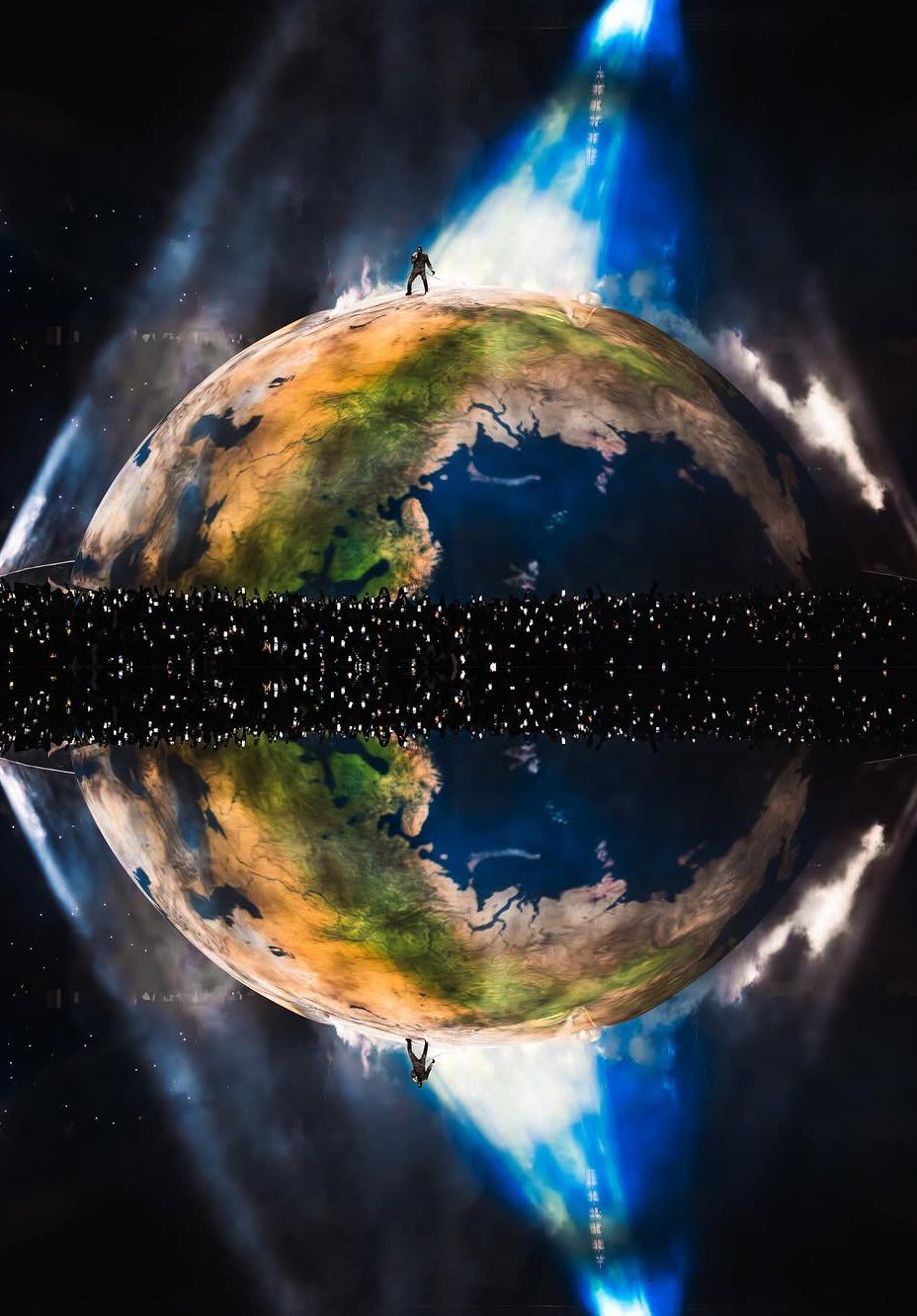 Những ngày qua, mạng xã hội “nóng” lên bởi thiết kế sân khấu trong đêm diễn tại SoFi Stadium (Los Angeles) của Kanye West. Hình ảnh Ye đứng trên một “Trái Đất khổng lồ” giữa sân vận động tạo nên làn sóng tranh luận. Đêm diễn này đánh dấu màn tái xuất quy mô lớn của Ye tại Mỹ sau nhiều năm vắng bóng, nhưng thay vì một concert thông thường, anh tiếp tục biến nó thành một “tác phẩm nghệ thuật sống”. Trung tâm sân khấu là concept “The Giant Earth” - mô hình Trái Đất khổng lồ vận hành bằng hệ thống LED phức tạp, liên tục xoay và biến đổi bề mặt hình ảnh. Không vũ công, không dàn dựng đông người, toàn bộ không gian được tối giản đến cực hạn.
