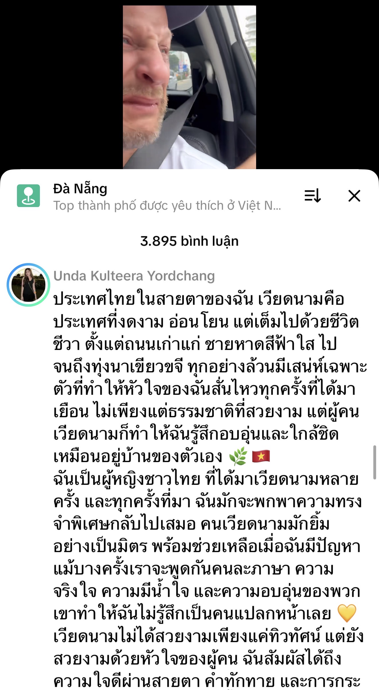 Bên cạnh những lời động viên an ủi bên dưới phần bình luận cũng có không ít du khách các nước vào bày tỏ tình cảm của mình đối với Việt Nam. Đáng chú ý một du khách đến từ Thái Lan chia sẻ trải nghiệm cá nhân sau nhiều lần ghé thăm dải đất hình chữ S: “Việt Nam không chỉ đẹp ở phong cảnh mà còn đẹp ở trái tim của con người. Đối với tôi đây không chỉ là một đất nước du lịch mà là nơi đầy ắp những cảm xúc ấm áp khó tả.” Người này cho biết dù đôi khi gặp rào cản ngôn ngữ nhưng sự thân thiện và cởi mở của người dân địa phương đã giúp xóa nhòa khoảng cách.