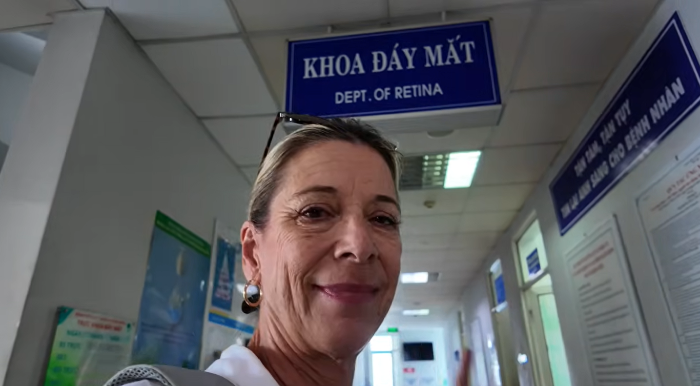 Trong video, thì ra là nữ du khách Tây Susan Lindgren, 58 tuổi, đến từ Mỹ, hiện đang sống tại Đà Nẵng. Cô chia sẻ: “Tôi đang ở Bệnh viện Mắt Đà Nẵng. Và trước khi tôi rời đi, tôi cần chia sẻ một chút về trải nghiệm của mình ở đây. Lý do tôi ở đây vì hôm nay là thứ 2. Vào chiều thứ 6, tôi đột nhiên nhận thấy một vài đốm đen như những con loăng quăng trong một bên mắt của mình, và chỉ nhận được một vài tia sáng. Tôi đã nghĩ có điều gì đó kỳ lạ nhưng đơn giản là do một ít chì kẻ mắt đen dính vào mắt, hoặc một ít phấn mắt, có thể nó hơi lấp lánh một chút. Bởi vậy, tôi đã nghĩ mình không cần quá lo lắng.