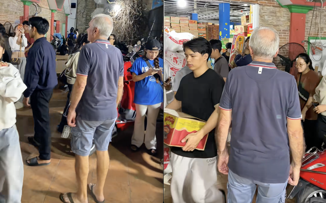Tại một điểm tiếp nhận hàng cứu trợ lũ lụt dành cho bà con miền Trung (địa điểm tại TP.HCM), những ngày qua luôn trong tình trạng nhộn nhịp. Từ sáng đến tối, người dân vẫn nối nhau mang đến từng thùng mì, nước uống, quần áo, thuốc men, những món đồ mà ai cũng mong có thể góp một chút sức lực san sẻ với đồng bào đang bị ảnh hưởng bởi thiên tai. Giữa dòng người ấy, có khi xuất hiện những khoảnh khắc rất đẹp, bình dị mà nhiều cảm xúc - giống như hình ảnh của một vị khách Tây được ghi lại.