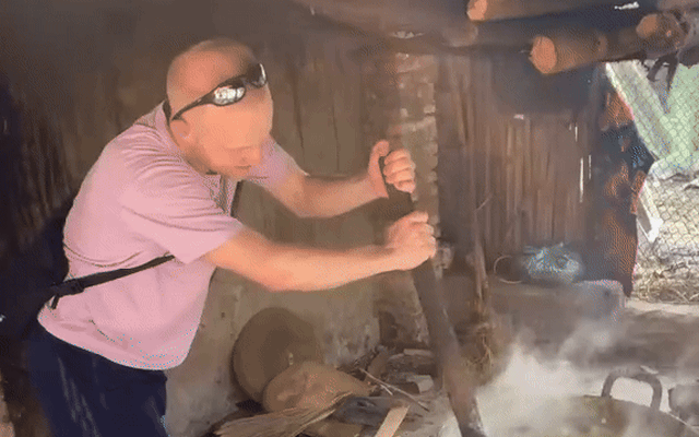 Sau đây là một ví dụ. Vị khách nước ngoài xuất hiện trong video được tài khoản "Hướng dẫn viên nghèo vượt khó" đăng tải, anh tự mình đứng... nấu cám lợn. Chàng trai không thể giấu được sự thích thú qua nét mặt. Thậm chí anh còn làm 1 hành động khiến nhiều người xung quanh bật cười, đó là giả vờ thử đưa tay lên nếm thử.