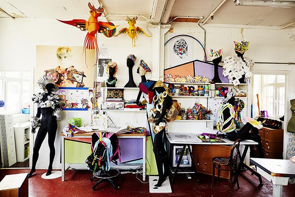 Phòng làm việc "hoa lá cành" của nhà thiết kế người Anh - Fred Butler, với một loạt các tạo hình và mannequin được khoác lên mình những thiết kế mới nhất.