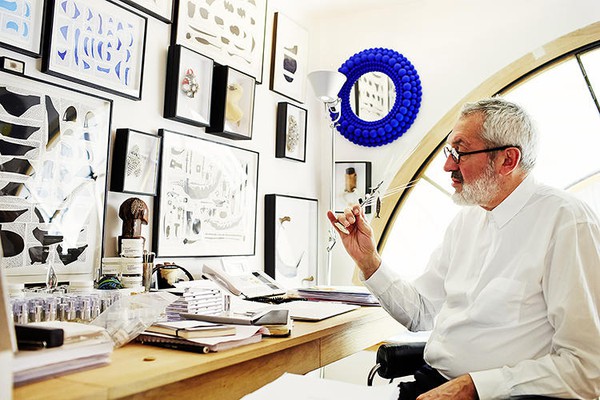 Đúng như tính chất công việc của mình, nhà thiết kế trang sức Andrew Logan có cả một phần tường phòng chỉ để "sưu tầm" những loại đá quý và phụ kiện thiết kế.
