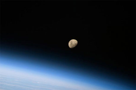 Mặt trăng và một phần trái đất. Ảnh: Soichi Noguchi.