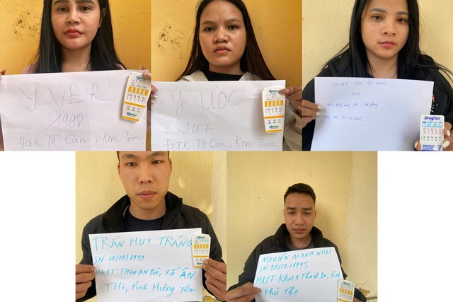 Khi lực lượng công an vào kiểm tra các đối tượng bỏ trốn lên nóc nhà vệ sinh tầng 4 của cơ sở. Tiến hành test nhanh ma túy trong mẫu nước tiểu của 5 đối tượng, kết quả: 5/5 đối tượng “dương tính” với ma túy.