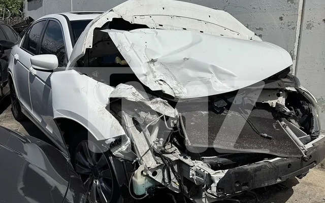 Chiếc xe gây tai nạn bị hư hỏng nặng nề, trong khi phương tiện của Tori Spelling chịu thiệt hại ít hơn. Ảnh: Pagesix