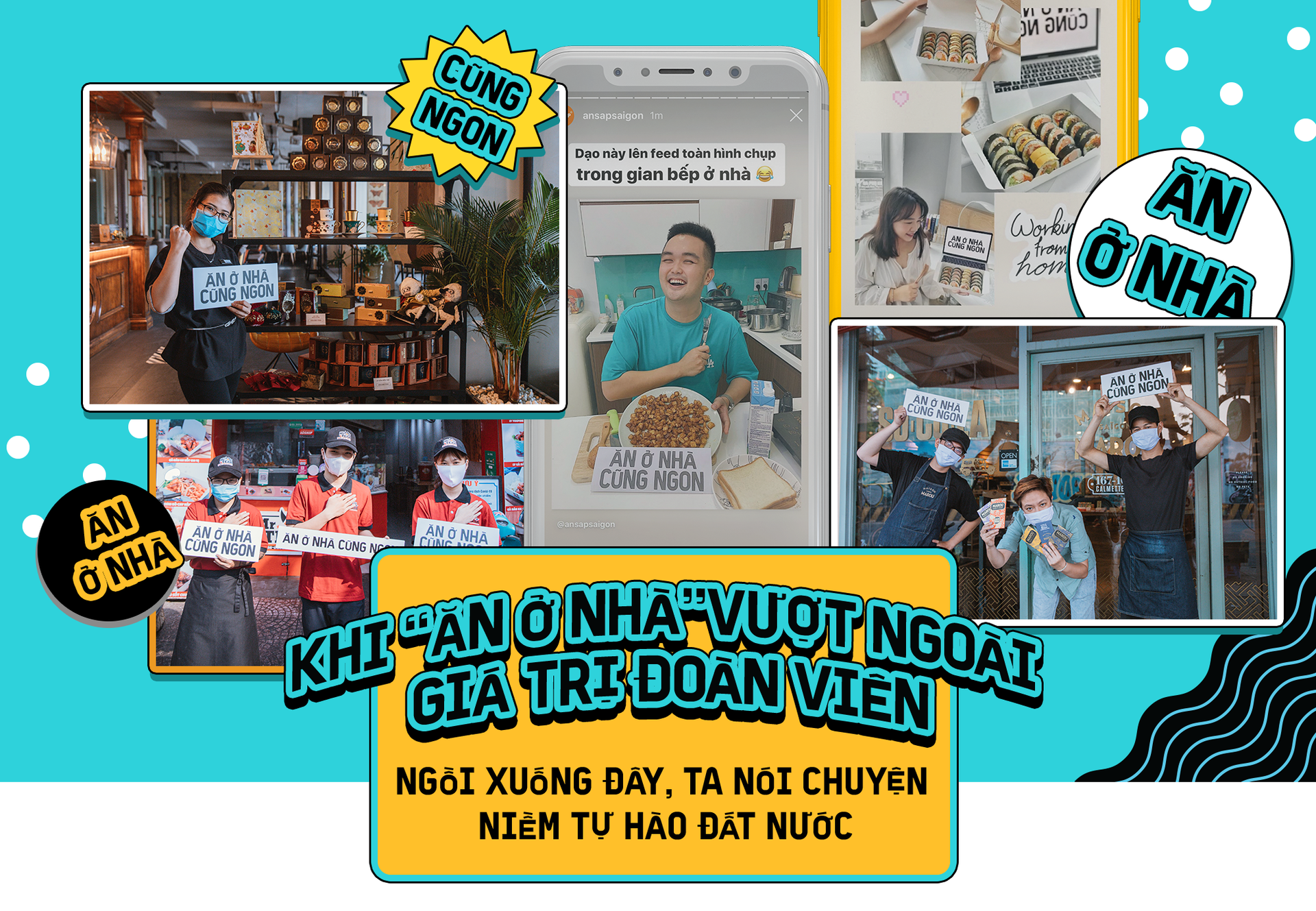 Nhịp sống khẩn trương hối hả của Sài Gòn hay Hà Nội đôi khi đẩy chúng ta rời xa những bữa cơm nhà. Một buổi đi công chuyện, làm việc muộn, tiện chỗ ăn gần công ty, tụ tập bạn bè… dường như khiến người ta chọn ăn ở ngoài cho "tiện, gọn, đỡ mất thời gian mẹ ơi". COVID-19 đến kéo người trẻ trở về mâm cơm bên gia đình. Nhưng "ăn ở nhà" đã không còn là câu chuyện đoàn viên hay gia đình ấm cúng, giờ đây nó đã thành câu chuyện yêu nước khi cả thành phố bật công tắc sống chậm, ở nhà để bảo vệ sức khỏe.