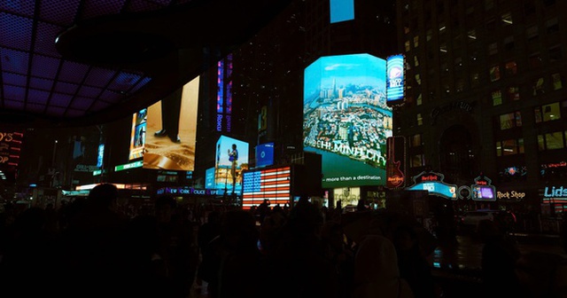 Hình ảnh đất nước và con người Việt Nam bất ngờ xuất hiện trên màn hình LED bên ngoài tòa nhà Thomson Reuters tại Quảng trường Thời Đại danh tiếng.