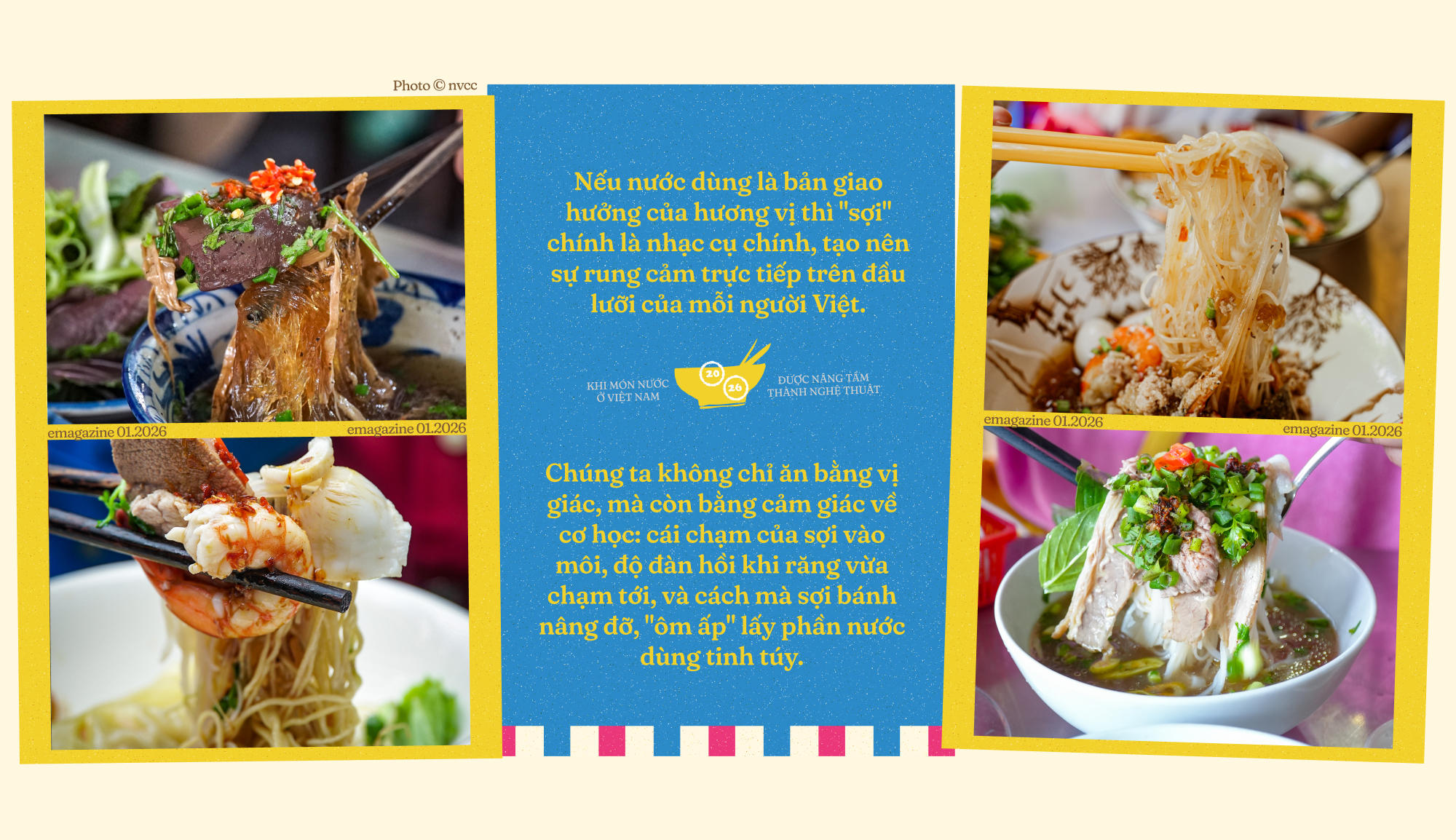 Nghệ thuật ấy không bao giờ bị đóng khung trong những công thức khô khan. Nó tồn tại và biến biến hóa theo từng giác quan của chúng ta: là cái chạm của đôi đũa tre, là làn khói nghi ngút đánh thức khứu giác, là âm thanh "húp" sùm sụp tràn đầy niềm vui, và là hơi ấm lan tỏa trong lồng ngực. Thứ nghệ thuật này chỉ thực sự trọn vẹn khi được ăn đúng cách: ăn khi còn nóng, ăn trong bầu không khí náo nhiệt của quán nhỏ ven đường hay sự ấm cúng của bếp nhà, và ăn bằng tất cả sự trân trọng dành cho những người đã tạo ra nó.