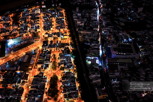 Ban đêm, nhìn toàn cảnh Nha Trang từ trên cao trong những ngày mưa lũ lịch sử hiện lên như hai thế giới song song. Một nửa thành phố vẫn sáng rực, dòng xe đỏ trắng nối nhau trên những con đường quen thuộc, những tòa nhà vẫn sáng đèn điện.