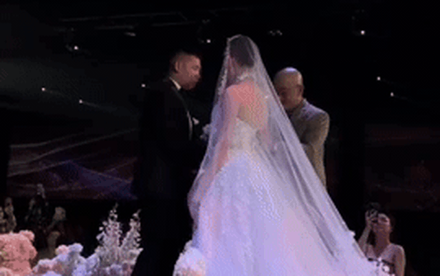 Trong sự chứng kiến của gia đình, bạn bè và đồng đội, chú rể Quang Vinh xuất hiện bảnh bao trong bộ vest đen lịch lãm, còn cô dâu Mỹ Linh khoác lên mình chiếc váy trắng tinh khôi, đội voan dài thướt tha. Khoảnh khắc cả hai nắm tay, trao nhau ánh nhìn hạnh phúc trên lễ đường đã khiến không ít khách mời xúc động.