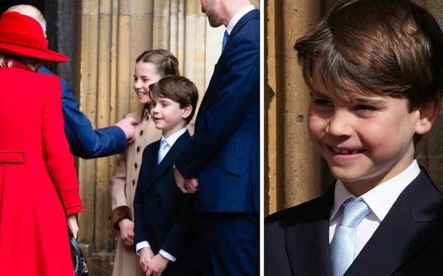 Ngày Chủ nhật, tiểu hoàng tử từng nổi tiếng với những biểu cảm lém lỉnh, đôi khi hờn dỗi làm nũng mẹ gây bão truyền thông tại các sự kiện hoàng gia đã thực sự khiến công chúng phải ngỡ ngàng vì vẻ ngoài chững chạc của mình. Diện bộ vest xanh navy lịch lãm kết hợp cùng chiếc cà vạt màu xanh lam nhạt tươm tất, Louis trông như một "quý ông nhí" đích thực khi tự tin bước đi bên cạnh bố William, mẹ Kate và hai anh chị là Hoàng tử George cùng Công chúa Charlotte.