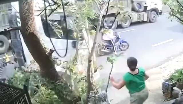Lúc này, xe container bất ngờ lao vào khu vực tập trung nhiều người. Chiến sĩ Nguyễn Mai Thi phát hiện em Thu Trâm đang chạy xe máy đúng hướng lao của xe đã lập tức kéo em ra khỏi vùng nguy hiểm, tránh một tai nạn có thể gây hậu quả đặc biệt nghiêm trọng.
