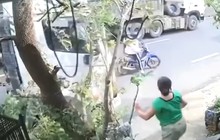 Khoảnh khắc thót tim chiến sĩ cảnh sát cứu nữ sinh trước đầu xe container