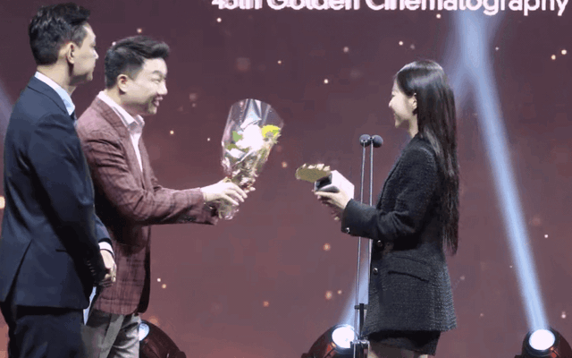 Park Bo Young trên sân khấu lễ trao giải The 45th Golden Cinematography Awards.