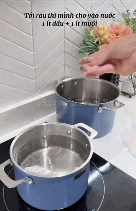 - Với rau xanh: Trần cùng nước sôi có thêm chút muối và vài giọt dầu ăn để giữ màu.