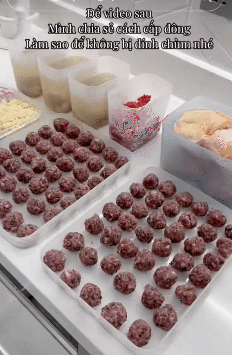 - Với thịt viên/mọc: Dàn ra khay, cấp đông trước 1 đêm, sau đó rồi mới cho vào hộp nhỏ để tiết kiệm diện tích tủ.