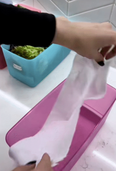 - Lót một lớp giấy ăn trong hộp để hút ẩm rồi mới cho rau vào Sau khi cấp đông khoảng 2 tiếng, lấy ra xóc nhẹ để rau tơi, không dính vào nhau.