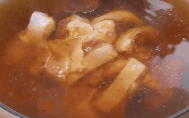 Khi nồi nước dùng thảo mộc đã tỏa ra mùi thơm ngào ngạt, hãy trút toàn bộ phần thịt gà đã ướp vào nồi. Lúc này, điều cấm kỵ nhất là đun sôi sùng sục. Hãy hạ lửa xuống mức nhỏ nhất, đậy kín nắp và để gà chín từ từ bằng nhiệt độ ủ đượm trong khoảng 10 phút.