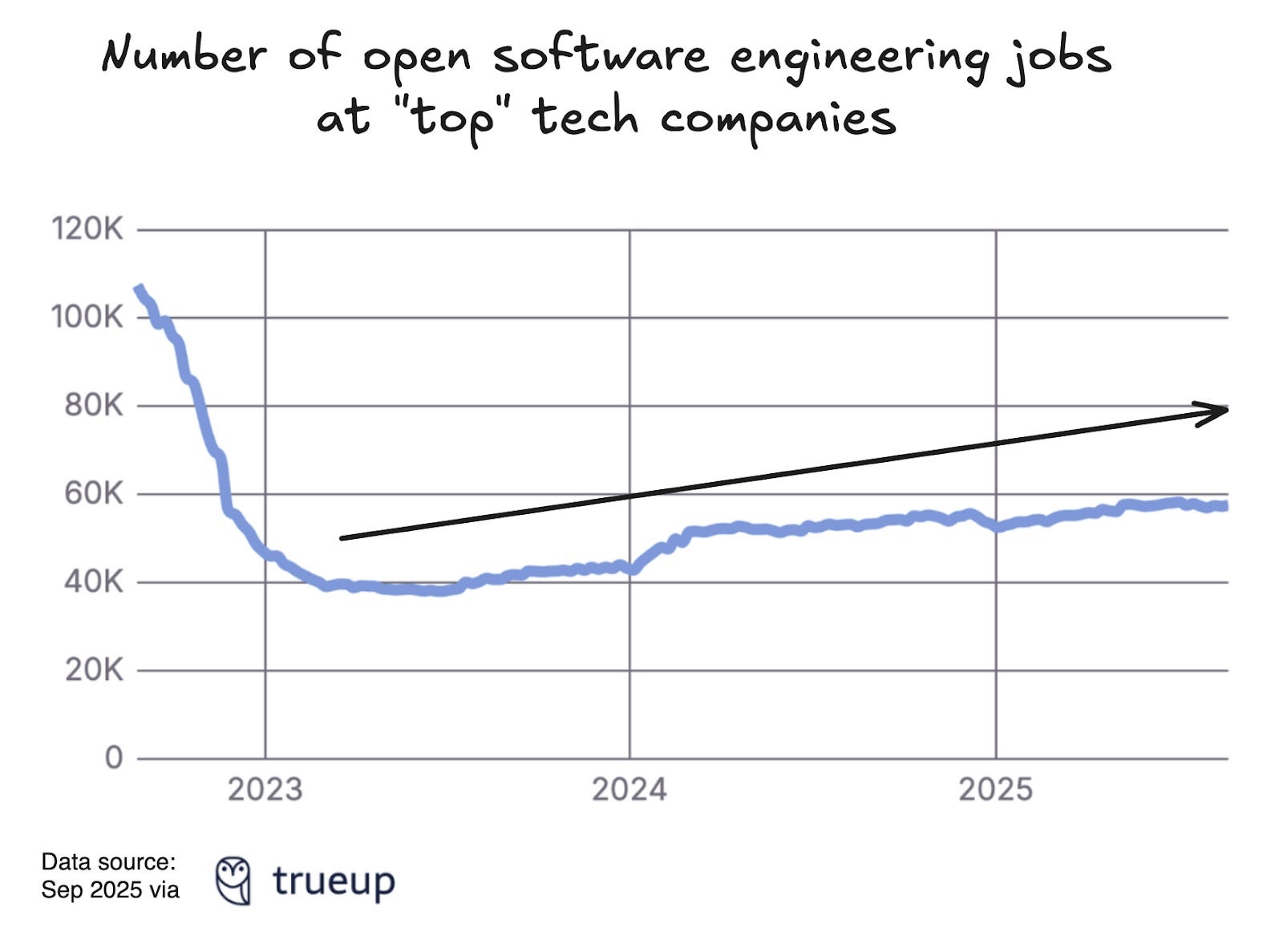 Một yếu tố khác cần lưu ý là mốc so sánh. Sự tăng trưởng hiện tại phần nào phản ánh quá trình phục hồi sau giai đoạn suy giảm mạnh trong năm 2022 và đầu 2023, khi các công ty công nghệ cắt giảm nhân sự sau thời kỳ mở rộng quá nhanh. Vì vậy, mức tăng hiện nay cũng có thể được hiểu là sự “bật lại từ đáy” của chu kỳ.