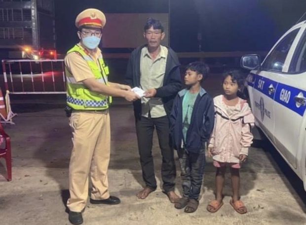 Theo đó, vào lúc 1h ngày 9/2, trong lúc thực hiện nhiệm vụ tuần tra, kiểm soát, bảo đảm trật tự an toàn giao thông trên tuyến Quốc lộ 14 (xã Quảng Tín, huyện Đắk R’lấp), tổ công tác thuộc Đội Cảnh sát giao thông đường bộ số 2, Phòng CSGT Công an tỉnh Đắk Nông phát hiện một người đàn ông dìu theo hai con nhỏ đi trên đường trong đêm tối rất nguy hiểm. Đây là đoạn đường không có đèn đường chiếu sáng, tiềm ẩn nhiều nguy cơ tai nạn giao thông.