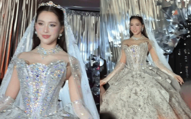 Mới đây, nàng hậu tiếp tục gây chú ý khi xuất hiện trong bộ váy cưới lộng lẫy tại một sự kiện thời trang. Với thần thái rạng rỡ cùng nhan sắc ngày càng mặn mà, người đẹp sinh năm 2000 nhanh chóng trở thành tâm điểm bàn luận trên mạng xã hội.