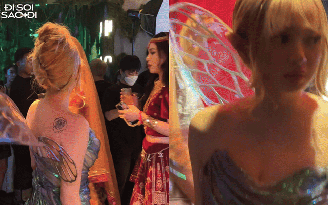 Tại đây, Kaity Nguyễn chiếm spotlight khi lựa chọn tạo hình thành nàng tiên Tinker Bell - nhân vật hoạt hình nổi tiếng của Disney. Nữ diễn viên sinh năm 1999 còn đội tóc giả màu vàng bạch kim, diện chiếc váy ngắn khoe đôi chân thẳng tắp. Điểm nhấn của Kaity Nguyễn tại sự kiện này còn là đôi cánh tiên cùng màu với bộ trang phục.