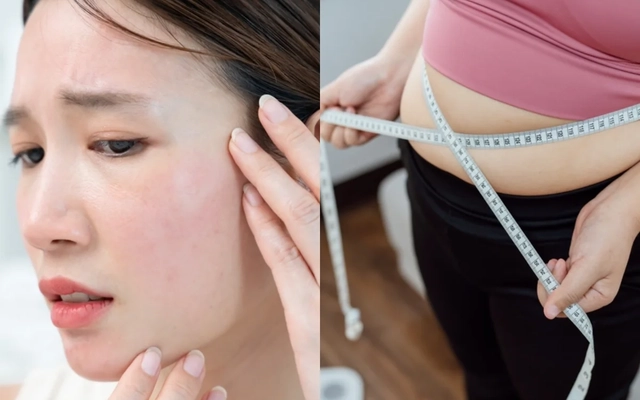 Thay đổi vóc dáng: Tích tụ mỡ bụng, tăng cân.