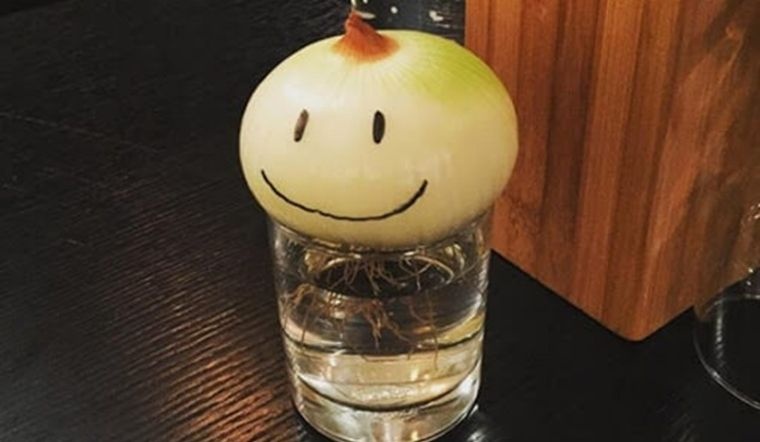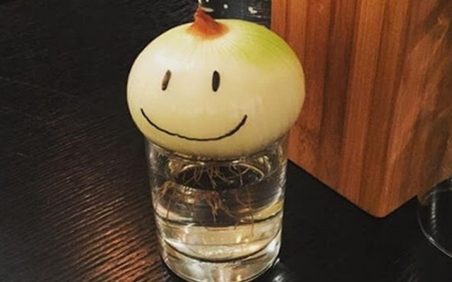 - Đặt cốc đựng hành tây ở vị trí có ánh sáng nhẹ như gần cửa sổ hoặc nơi thoáng khí. Khi có đủ điều kiện, hành sẽ bắt đầu mọc rễ và lá non, từ đó duy trì trạng thái “tươi sống” thay vì nhanh héo hoặc phân hủy như khi để khô.