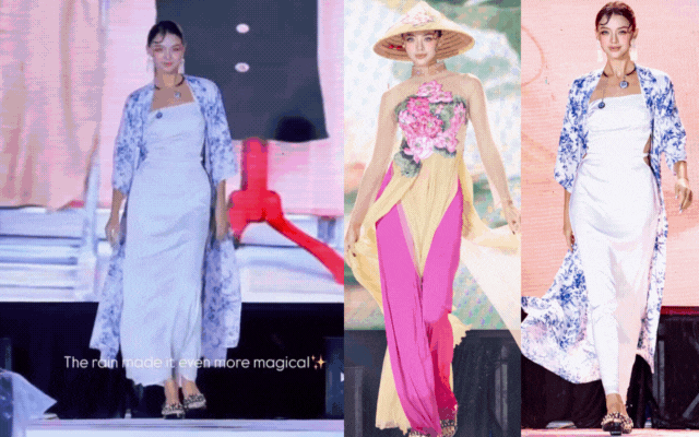 Dù sân khấu trơn trượt vì mưa, Dianka vẫn giữ thần thái chuyên nghiệp, sải bước dứt khoát, ánh mắt kiêu kỳ và tự tin. Nhiều khán giả có mặt trực tiếp ghi lại khoảnh khắc này và chia sẻ rầm rộ với lời bình: "Cơn mưa khiến màn catwalk trở nên kỳ ảo hơn, như một cảnh phim điện ảnh".