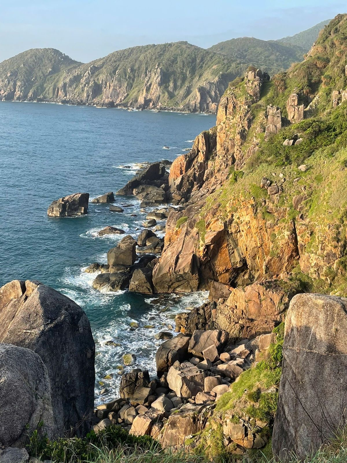 Nếu Bãi Xép khiến người ta mê mẩn bởi sự đối lập giữa xương rồng gai góc và thảm cỏ xanh mềm mại, thì Ghềnh Đá Đĩa lại là tuyệt tác khiến bất cứ ai cũng phải sững sờ. Những cột đá lục giác đen bóng xếp chồng lên nhau một cách hoàn hảo đến khó tin, như thể thiên nhiên đã dành riêng nơi này cho sự kỳ diệu.
