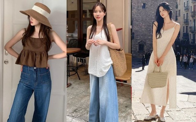 Công thức áo hai dây trắng và quần jeans ống rộng toát lên sự phóng khoáng, nữ tính. Bộ cánh này không quá cầu kỳ, nhưng vẫn giúp vẻ ngoài của người mặc trông thật ấn tượng. Những món phụ kiện như túi cói cỡ lớn, dây chuyền mảnh không chỉ hài hòa với bộ đồ mà còn nâng tầm sự cuốn hút.