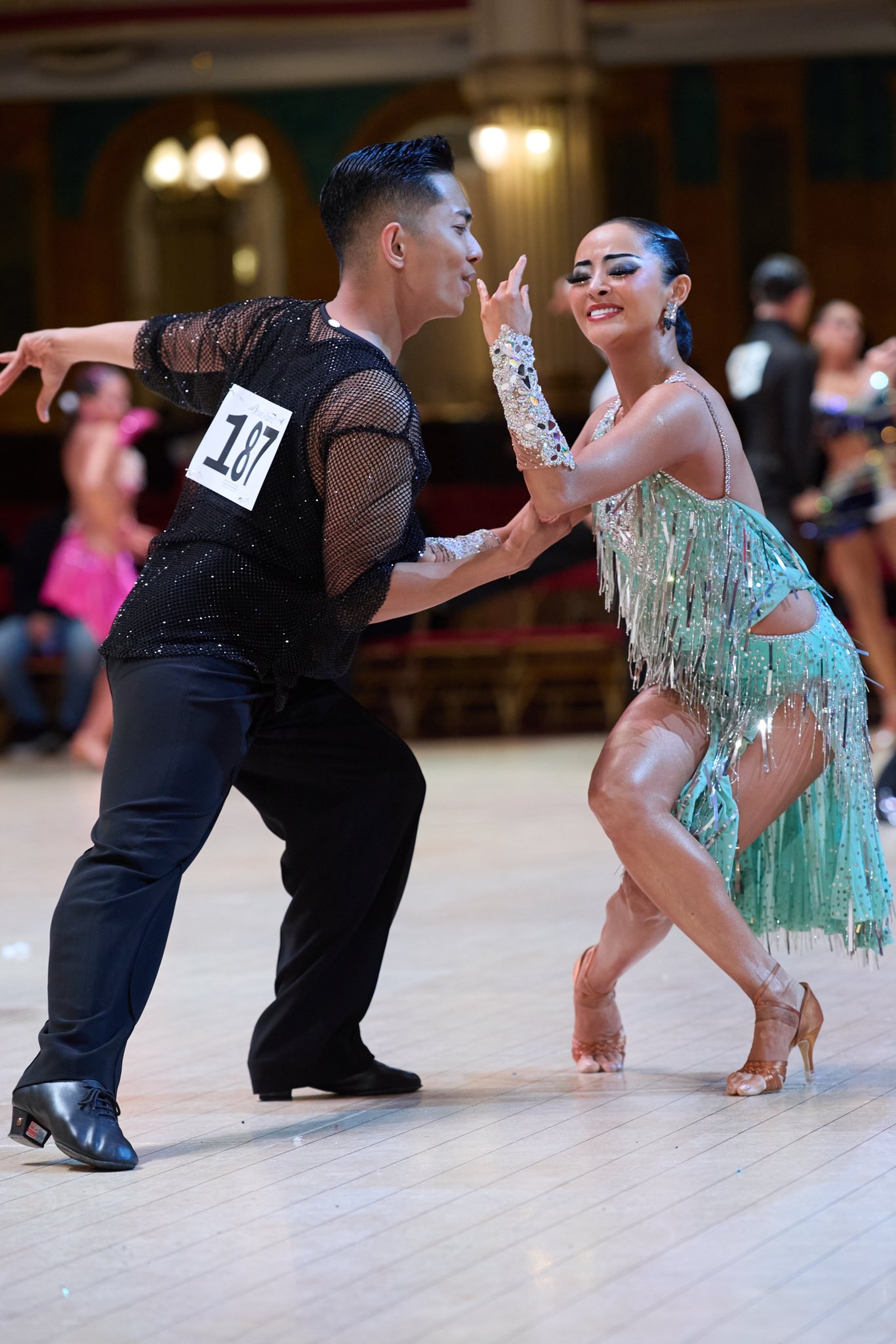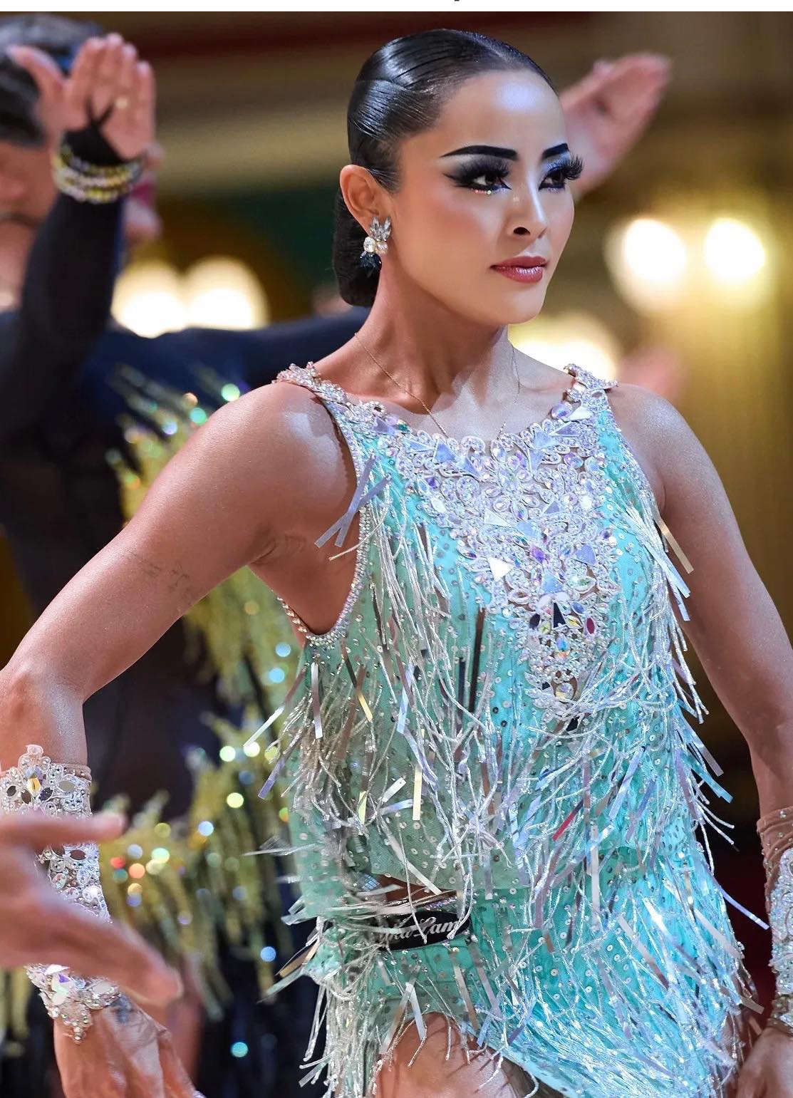 Đặng Thu Hương luôn khoác lên mình giao diện trưởng thành hơn 10 tuổi so với tuổi thật khi cùng Phan Hiển bước ra sàn trình diễn, thể hiện kinh nghiệm và sự chuyên nghiệp trong dancesport