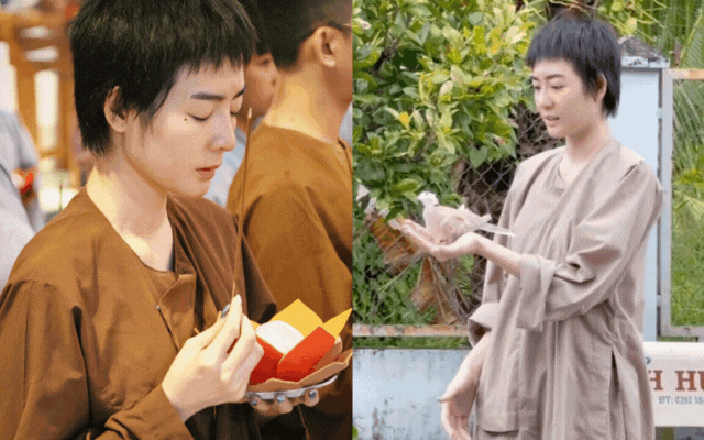 Trước đó, trên mạng xã hội cá nhân, Kim Nhã cũng thường xuyên chia sẻ hình ảnh mặc áo lam, áo nâu sòng đi chùa, tham gia các khóa tu.