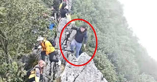 Sự việc xảy ra tại núi Hoa Dĩnh (Huaying Mountain), thành phố Quảng An. Trong video, người đàn ông thản nhiên bước men theo mép đá cheo leo, tay vẫn giơ điện thoại để bắt góc "sống ảo". Anh cúi xuống kiểm tra điểm tựa rồi xoay người lại chuẩn bị bấm máy.