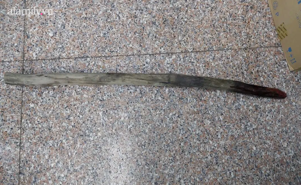 Cây gỗ dài 1.5m, đường kính 6cm đâm xuyên vào tầng sinh môn, đi cạnh tinh hoàn bên phải đâm xéo lên thành bụng trái.
