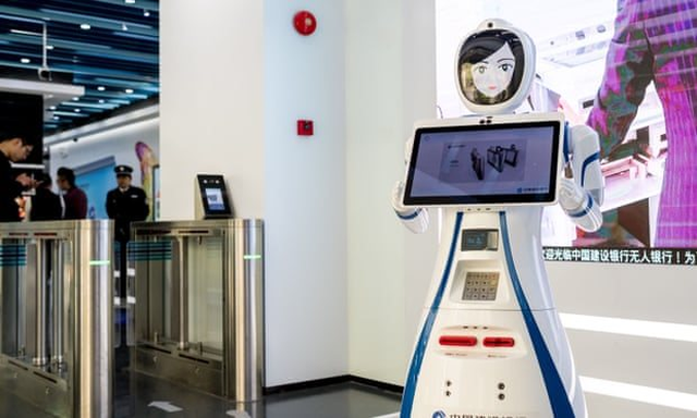 “Tiểu Long” có thể trò chuyện với khách hàng, nhận thẻ ngân hàng và kiểm tra tài khoản. Cô ấy là một phần của đội quân robot ngày càng lớn trong các thành phố của Trung Quốc.