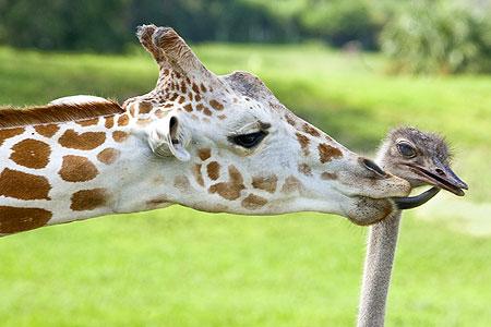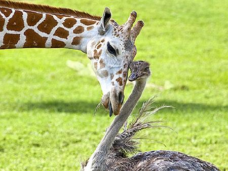 3. Hươu cao cổ và đà điểuGiữa động vật không hề có tình bạn giả tạo, tất cả đều bắt nguồn từ sự chân thành, yêu mến nhau, thật đáng yêu phải không?