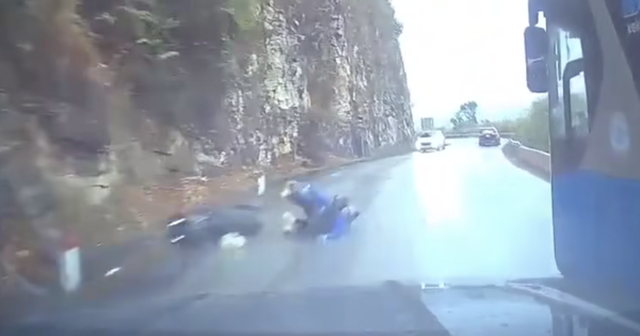 Khi tài xế cố vượt xe khách, đúng lúc này ở chiều ngược lại 2 người ngồi trên xe máy đi tới. Do đường hẹp, trơn trượt, trước tình huống bất ngờ, tài xế xe máy phanh gấp đã cùng người ngồi đằng sau ngã ra đường và bị ô tô BKS 15C-461.38 cán qua.