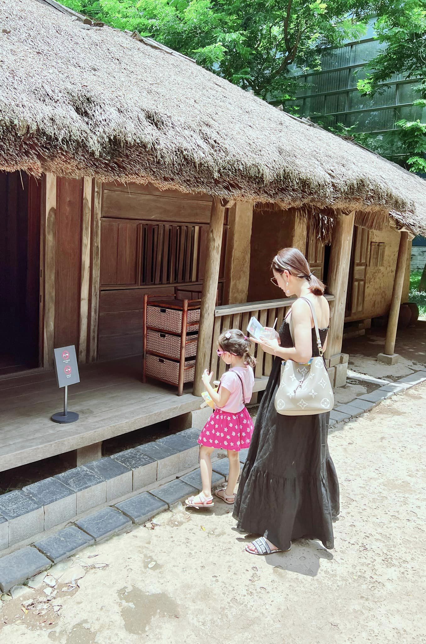 Cả nhà đến bảo tàng Dân Tộc Học Việt Nam. Nắng chang chang, nhưng cô bé vẫn phấn khích khi chạy chơi khám phá khắp nơi..., Lina và mẹ tung tăng ngắm nghĩa mãi không thôi. Lina có đủ thứ câu hỏi trên trời còn mẹ thì động não tìm cách giải thích dễ hiểu nhất cho con. Lina lịch sự lắm, thấy biển đề bỏ dép là bé cởi dép, đi lại thì hết sức nhẹ nhàng, nói thì kiểu thầm thì sợ như nói to thì các hiện vật sẽ chạy biến đi mất.